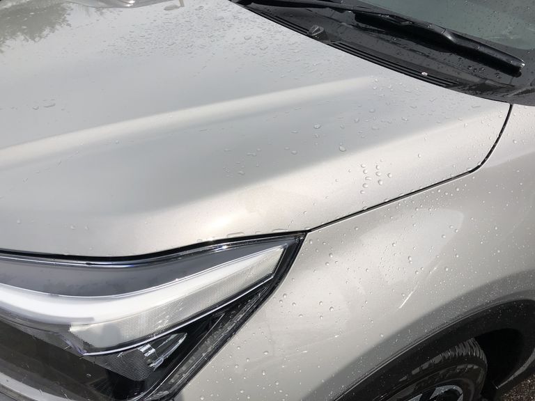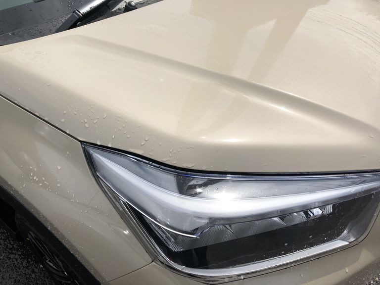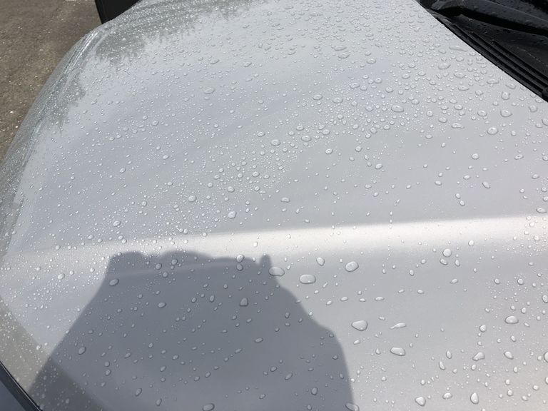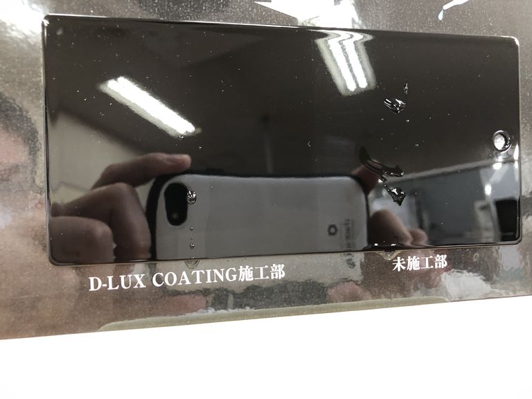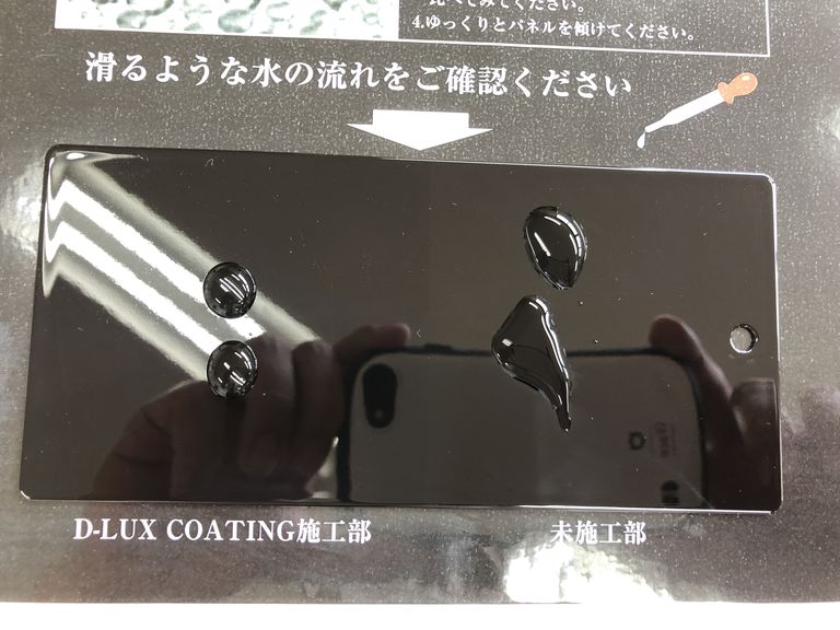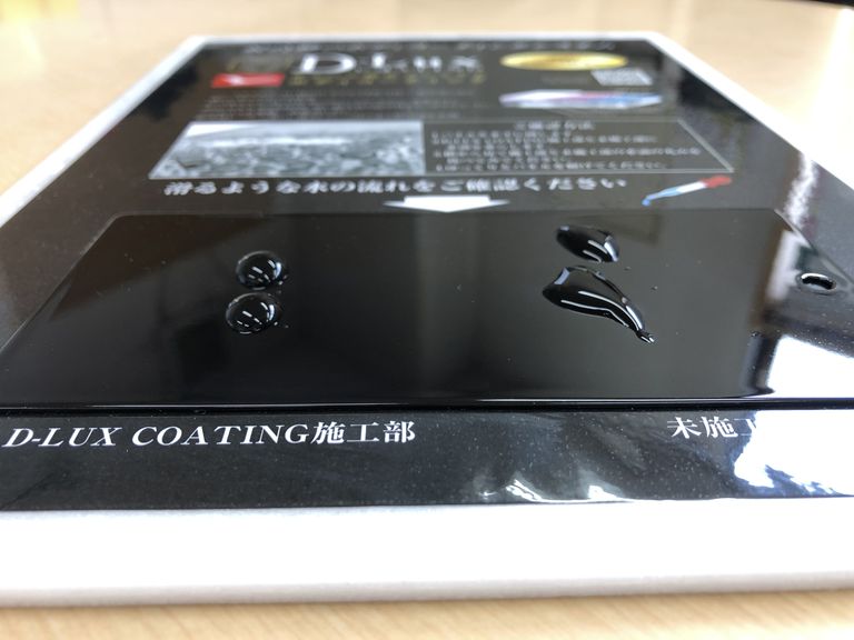 今回はその効果がわかるように、デモンストレーション用什器と実車を使って、実際に水をかけてみました。私の写真の腕が悪く、少し分かりづらいかもしれませんが、効果は抜群でした。気になる方はお店にきていただければ、実際に体験もできますので、ぜひお声掛けください。