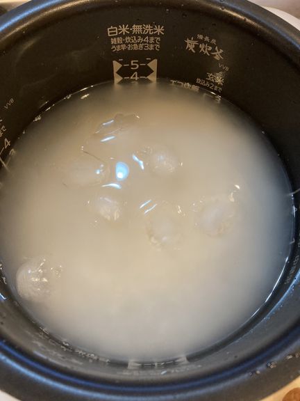 分量としては2合ならば6~7個、3合ならば10個程度。いつもより多少水加減を控えて下さい。