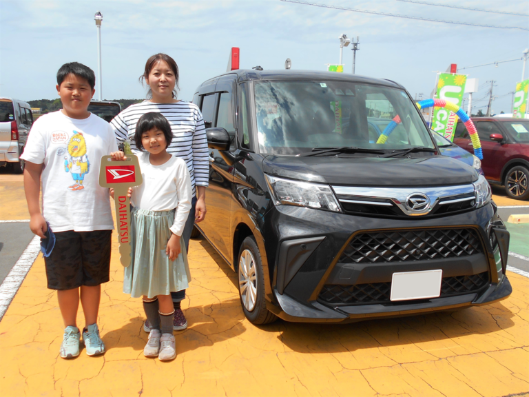 【車種】トール 【ボディカラー】ブラックマイカ 【この車で一番最初に行きたい場所は?】かみね動物園 【お客様からの一言】突然の事故からいろいろとスタッフの方々には大変お世話になりました。やっとむかえることのできた新しい車。大切にしていきたいです。子供たちもとてもよろこんでいます。ありがとうございました。 【営業担当より】ご納車ありがとうございました!今後とも、トールでのよりよいカーライフのためサポートさせていただければ幸いです。お出かけ等楽しんで下さい😊