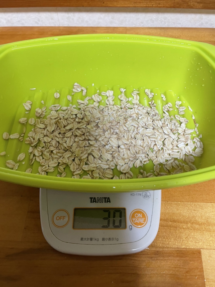 オートミール60g 水溶性食物繊維と不溶性食物繊維の両方を含みます。お通じをよくするためには両方の食物繊維は必要です。血糖値の上昇もしにくく、糖質も少ないスーパーフード!