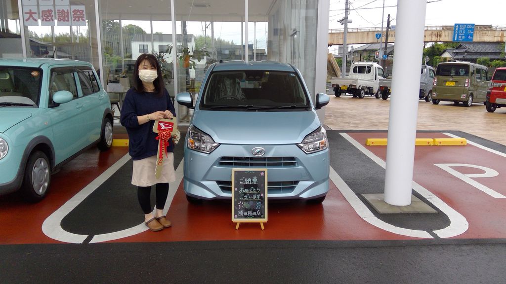 【車種】ミライース 【ボディカラー】 スカイブルーメタリック【この車で一番最初に行きたい場所は?】 那須【お客様からの一言】 新車購入出来とてもうれしいです。たくさんのご迷惑、お手間をお掛けして申し訳ありませんでした、これからもよろしくお願いいたします。◎おもてなしスイーツとてもおいしくいつも楽しみにしています。【営業担当より】ご納車おめでとうございますこちらこそお世話になりありがとうございましたこれからも末永いお付き合いをよろしくお願いします。 村松
