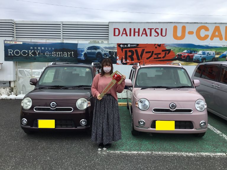 【車種】ミラココア 【ボディカラー】ムースピンクパール【お客様からの一言】念願のココア!大切に乗ります!!! 【営業担当より】この度はご納車させていただきありがとうございます!そして免許取得おめでとうございます!初めてのお車にココアを選んでいただきとても嬉しいです。今後とも末永いお付き合いをよろしくお願いいたします。
