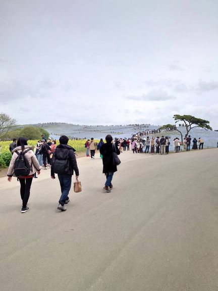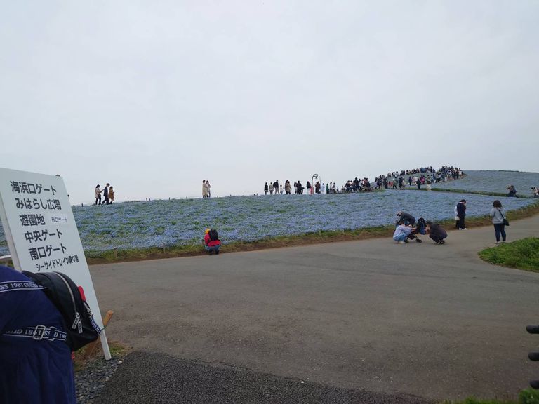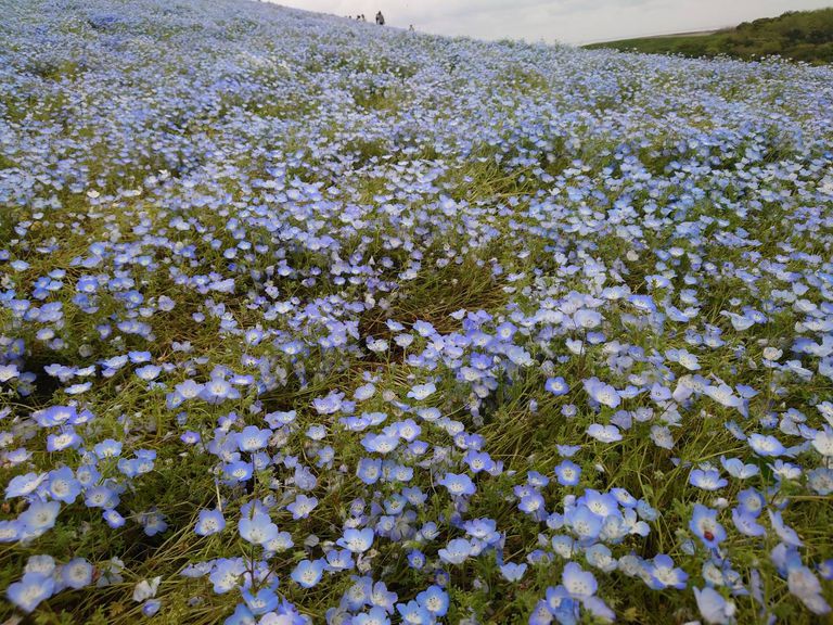 入場してしばらく歩くと、ようやく見えてきましたネモフィラの丘