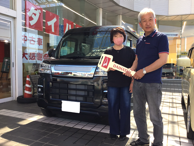 【車種】ハイゼットカーゴ 【ボディカラー】ブラックマイカメタリック 【この車で一番最初に行きたい場所は?】4WDなので雪山に行ってみたい! 【お客様からの一言】営業スタッフに色々と親切にして頂き、良い車が買うことが出来ました! 【営業担当より】ご納車ありがとうございました!黒のボディがピカピカでとてもかっこいいですね☆ご納車まで長い間お待ちいただき、ありがとうございました!ぜひたくさんご活躍させてくださいね♪ 担当:霜田