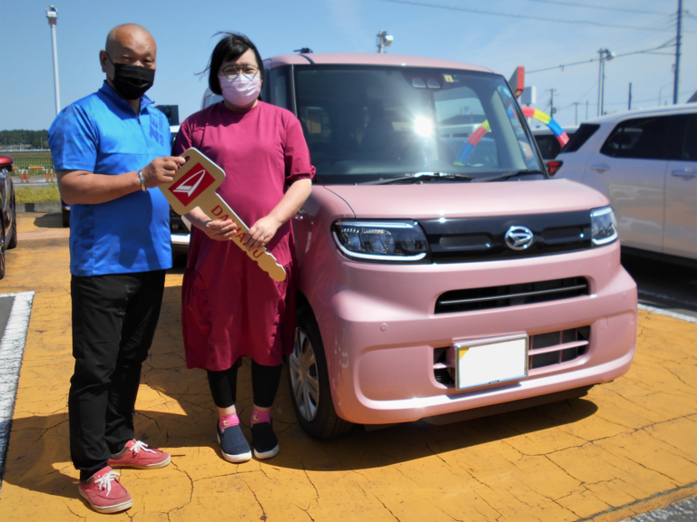 【車種】タント 【ボディカラー】ピンク 【この車で一番最初に行きたい場所は?】 動物園に行きたいです!!主人と初めてデ-トした場所なので....【お客様からの一言】 タントはとても乗りやすい車なので選びました!!色もピンクなので気に入っています!!担当のOさんには大変お世話になりました!!ありがとうございました!!【営業担当より】ご納車おめでとうございます!動物園いいですね😊かわいらしいピンクタントでたくさん思い出をつくって下さい!今後ともよろしくお願いいたします!