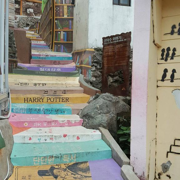 まるで本が積み重なっているような階段!色がカラフルでとってもキュート♡