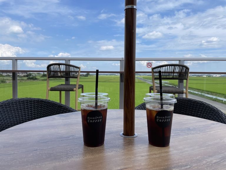 2階にはコーヒーショップがあり成田空港のフライトや田園風景を眺めながら