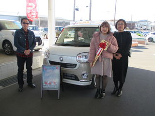 この度は、ムーヴキャンバスのご納車誠にありがとうございました。寒い中でしたが、とても楽しいご納車でした(^^)♪可愛さも安全性もばっちりのキャンバス!永く可愛がっていただければ嬉しいです!今後とも末永いお…