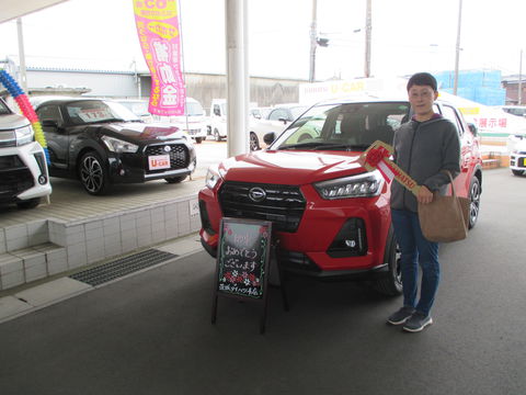 -お客様の声-新しい車でスキーにキャンプに行きたいと思います!この度は素敵なロッキーを納車させていただきありがとうございました♪沢山の思い出を作ってくださいね!(^^)!今後も末永いお付き合いをよろしくお願…