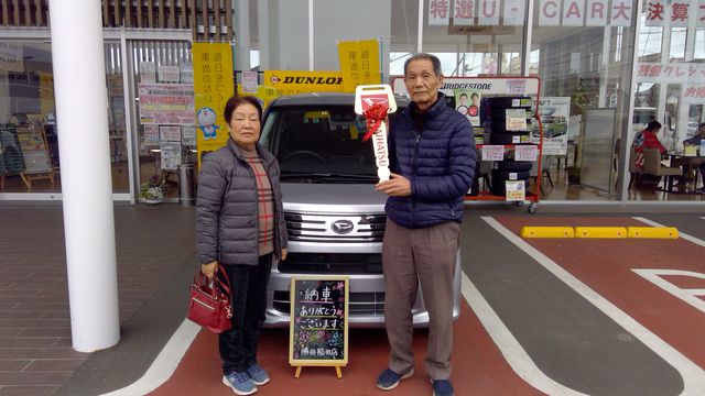 担当:石塚ご納車誠にありがとうございました。タントを気に入っていただけてとても嬉しいです。これからも末永いお付き合いを宜しくお願い致します。