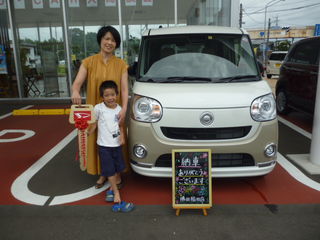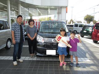 <お客様の声>気に入った車を購入することが出来て、とてもうれしいです。子供もスライドドアに喜んでいます。店員さんにも丁寧な対応して頂き、感謝しています。ご納車おめでとうございますこれからも末永いお付き…