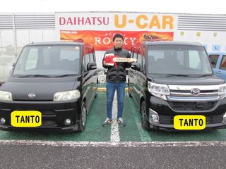 タントからタントへお乗り換えありがとうございました!新しいタントでたくさん思い出を作ってください♪今後とも茨城ダイハツをよろしくお願いいたします担当:佐々木