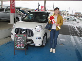 <お客様の声>実際に車を見て乗るのが楽しみになりました!これから大切に使っていきたいと思います。この度はありがとうございました!キャストでたくさんお出かけなさって下さい♪担当長岡