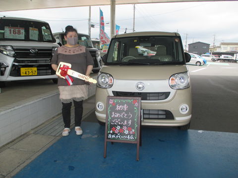 とてもかわいらしい車で乗るのが楽しみです。ミルクティー色のキャンバスと素敵な思い出をたくさん作って頂ければ嬉しいです。またのご来店をお待ちしております。担当石川
