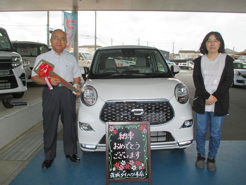 ソニカを16万キロ乗り、くたびれたのでキャストに乗り換えました。安全機能満載でたのしみです。真っ白なキャストがお優しそうなお二人にとてもお似合いです!ぜひお父様とまた一緒にご来店お待ちしております。担当…