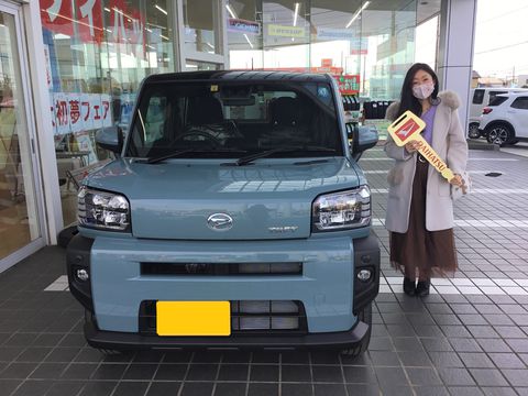 【車種】タフト【ボディカラー】レイクブルーメタリック【この車で一番最初に行きたい場所は?】他県の友人宅を周りたいです。温泉のチケットが当たったので、新車でそこにも行けたらいいなと思っています。【お客様…