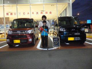 この度は、新型タントカスタムへのお乗り換えありがとうございました!こだわりのつまったタントカスタムでたくさん思い出を作ってください(^^)♪今後とも末永いお付き合いを、どうぞよろしくお願い致します。担当:…