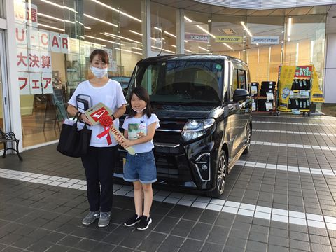 ~お客様の声~タント大好き人です。3台目になります。まだまだおでかけ楽しみます(孫たちと)納車させていただき誠にありがとうございます。今後とも末永いお付き合いよろしくお願いいたします。担当:谷口