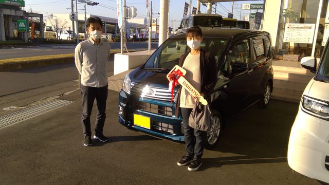 この度は、ムーヴのご納車ありがとうございました!かっこいいムーヴで素敵な思い出をたくさん作ってください!今後とも末永いお付き合いをよろしくお願い致します。担当:曽根