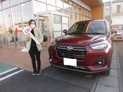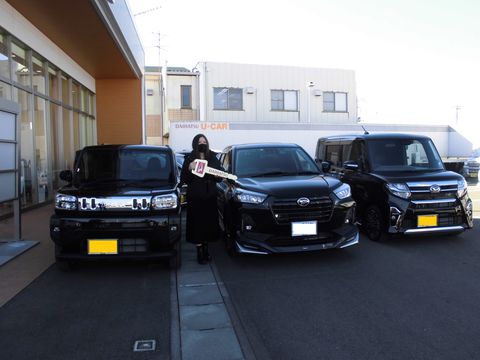 ~お客様の声~ロッキー最高!タントカスタム最高!!タフトも最高!!!この度は、納車させていただき誠にありがとうございました。今後とも末永いお付き合いよろしくお願いいたします。担当:大方