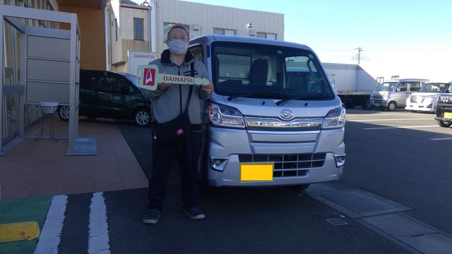 この度はご納車ありがとうございました!こだわりの詰まったかっこいい軽トラック、安全装置もばっちりです!安全運転で素敵なカーライフをお送りください!今後ともよろしくお願いいたします!〈担当:佐々木〉