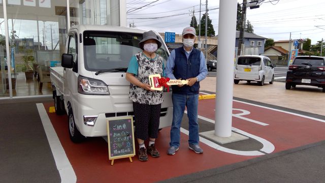 -お客様の声-お年寄りに親切な対応していただきありがとう。末永く大切に利用します。2台目のハイゼットありがとうございます!これからはオートマでお2人快適に乗っていただければ幸いです♪今後も末永いお付き合…