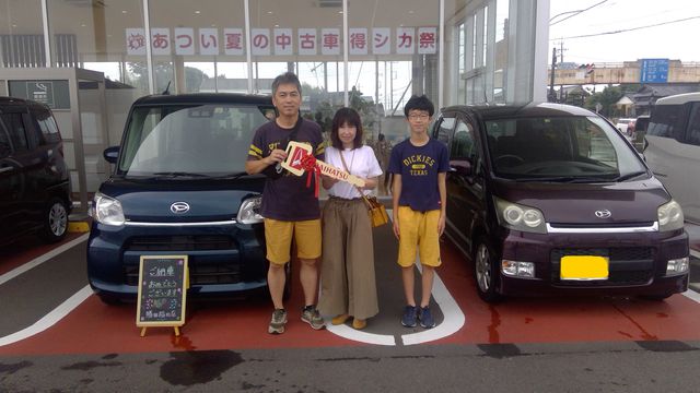 この度はご納車させていただき誠にありがとうございました。是非タントでたくさんの思い出を作ってくださいね!今後とも末永いお付き合いをよろしくお願いいたします。担当住谷