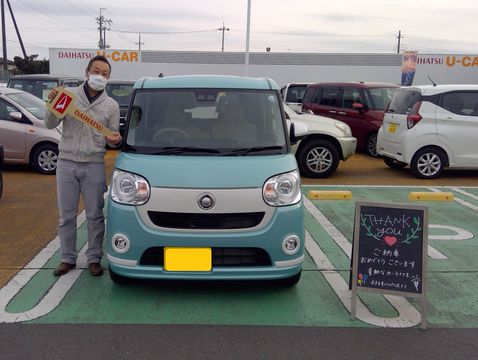 【車種】ムーヴキャンバス【ボディカラー】ファインミントM【この車で一番最初に行きたい場所は?】最初に行きたい場所は特にありませんが、家族でドライヴをしたいですね!【お客様からの一言】今までにあまり見た…