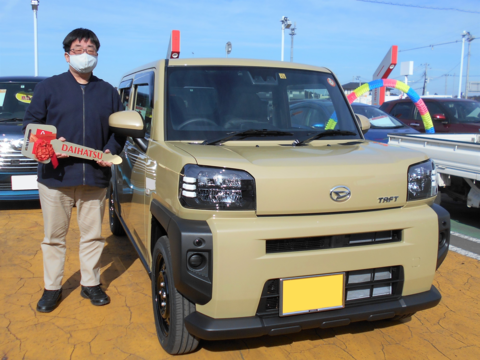 【車種】タフト【ボディカラー】サンドベージュ【この車で一番最初に行きたい場所は?】山に行きたいですね【お客様からの一言】新車はやっぱりいいですね【営業担当より】ご納車ありがとうございました!!スカイフ…