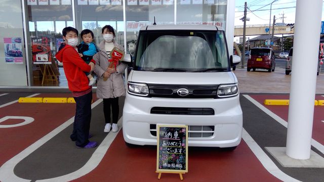 -お客様の声-ダイハツタント乗るの楽しみです。この度はご納車させていただきありがとうございました。今後も末永いお付き合いをよろしくお願い致します。担当:谷口