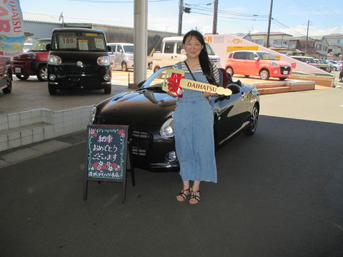 ~お客様の声~この度は、ありがとうございました。とてもステキな車、これからの生活が楽しみです。担当:齋藤この度はミラトコットをご納車させていただきまして、誠にありがとうございました。セラミックグリーンが…