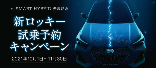 こんにちは、ダイハツ鹿嶋店です!今日は嬉しいお知らせです!!大好評いただいているロッキーに、ハイブリッドモデルが遂に登場!!その名も、「ROCKY-e:smart」です。ただいま、新ロッキー発表を記念…