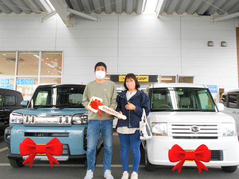 【車種】タフト【ボディカラー】ホワイトパール【この車で一番最初に行きたい場所は?】海岸通りを走りたい【お客様からの一言】コペンからの乗り換えで、アドバイスありがとうございます。【営業担当より】たくさん…