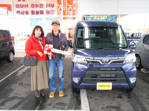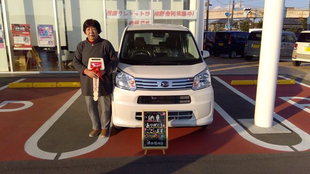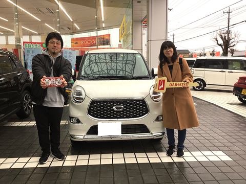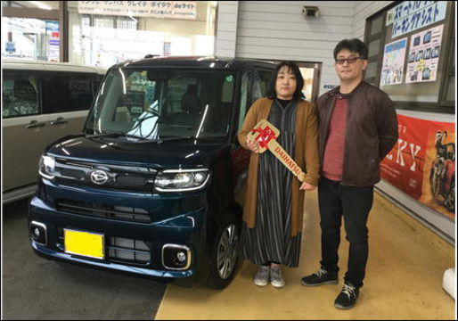 -お客様の声-初めてのダイハツ、大切に乗ります。この度はご納車させていただきありがとうございました。今後も末永いお付き合いをよろしくお願い致します。担当:谷口