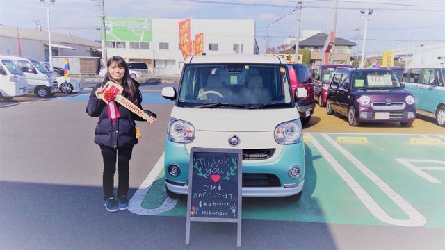 ~お客様の声~とても乗りやすい車で、同じ車二台目です。安全運転に気をつけて乗りたいと思います。担当:石塚この度は、ご納車させていただきまして誠にありがとうございました。ブルーのステキなミライースで楽しい…
