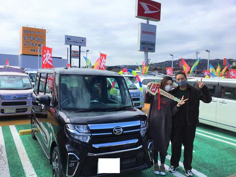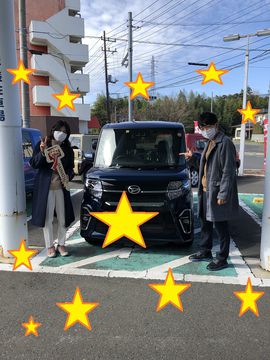 この度は、タントのご納車ありがとうございました!メッキのついたタントカスタム!とてもカッコ良く仕上がってますね✨仲良しご夫婦の思い出づくりに、タントが役立つことを願ってます!!今後とも末永いお付き合い…
