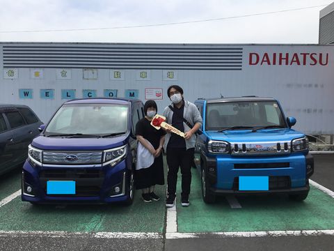 この度はタフトにお乗り換えいただきありがとうございます!鮮やかな青がとっても素敵です!いろいろな機能が付いたタフト乗りこなしてください!今後ともよろしくお願いいたします。〈担当:佐々木〉