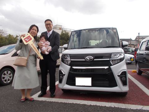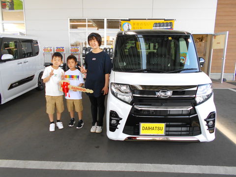 先日は納車させていただき誠にありがとうございました。ご家族みなさんでたくさん思い出を作ってください(*^^*)タントで、少しでも子育てのお役にたてれば嬉しいです!!担当平田