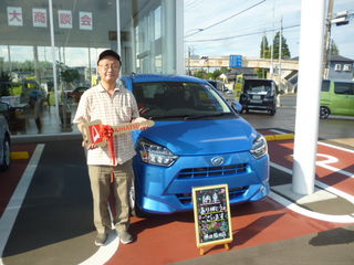 -お客様の声-ミライースも進化したものだ!!二代目ミライースの納車をさせていただき、ありがとうございました!今回のブルーもとてもお似合いです(^^)♪いままで同様、今後も末永いお付き合いをよろしくお願いい…