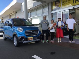 キャストのご納車おめでとうございます!素敵なボディカラーでおしゃれな車ですね♪とても走りも良くて、日常の足で大活躍だと思います。これからいっぱい思い出作ってください。今後とも宜しくお願い致します。