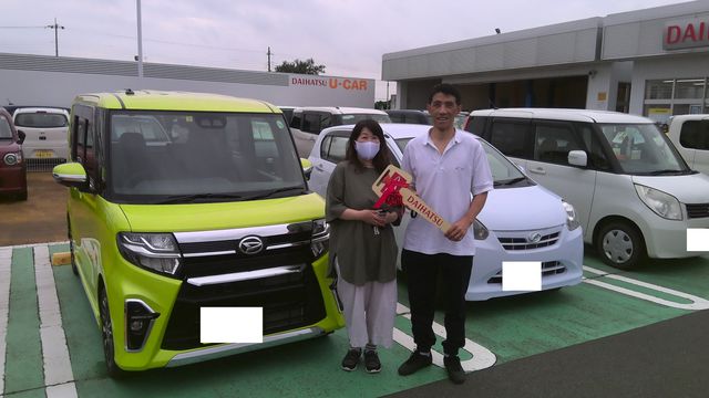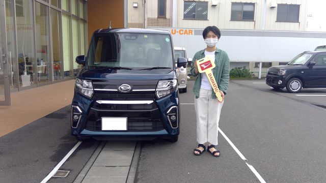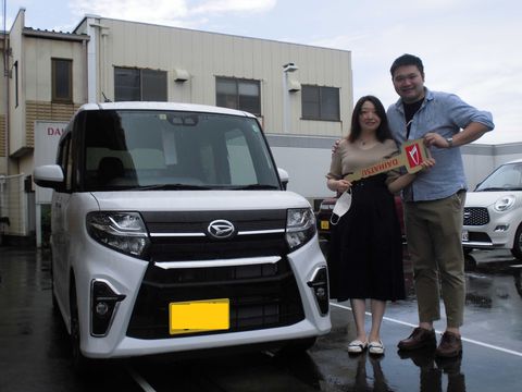 ~お客様の声~やっと念願のタントに乗れて幸せです。大切にします。この度はご納車させていただき誠にありがとうございます。今後とも末永いお付き合い、よろしくお願いいたします。担当:谷口