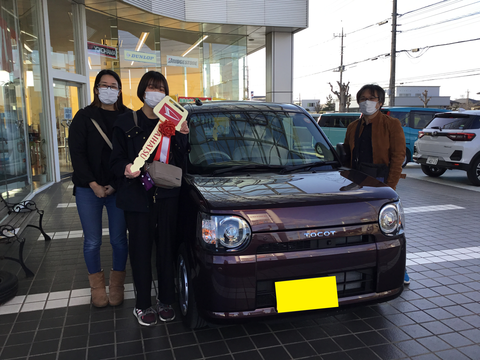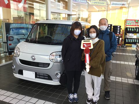 【お客様コメント】素敵なクルマが我が家に来ました。【スタッフコメント】本日はご納車おめでとうございます。ムーヴキャンバスはデザインもおしゃれで、使える機能も満載なのでこれからのカーライフが素敵な日常に…