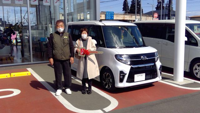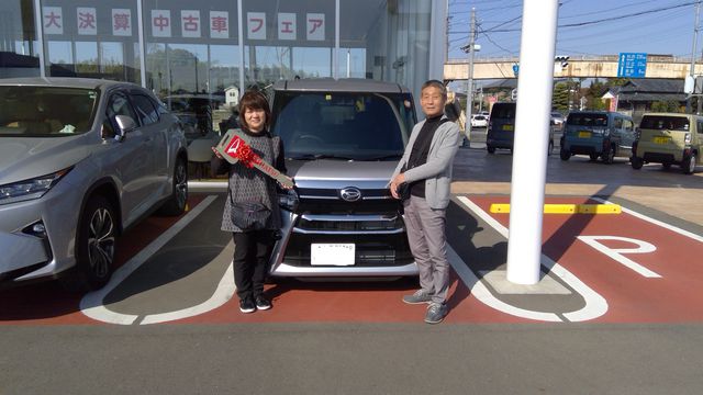 =お客様の声=親切なスタッフにめぐまれお気に入りの車を購入し満足しております。ご納車おめでとうございます。タントを気に入っていただきありがとうございます。これからも末永いお付き合いをよろしくお願いします…