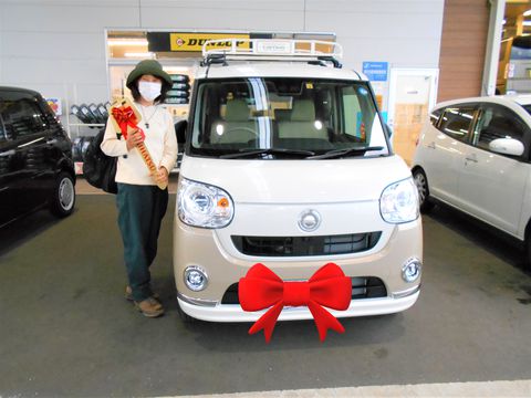 【車種】ムーブキャンバス【ボディカラー】パールホワイト×ナチュラルベージュ【この車で一番最初に行きたい場所は?】宝篋山【お客様からの一言】かわいい車でとても気に入ってます。石塚さんのおすすめで決…