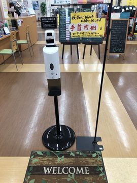 こんにちは!ダイハツ勝田昭和通り店のWです。今回ご紹介するのは「自動式除菌検温マシーン」です。以前は足踏み式の除菌スプレーでしたが、新しくセンサー感知式のオート噴霧機能が付いた除菌スプレーになりました…