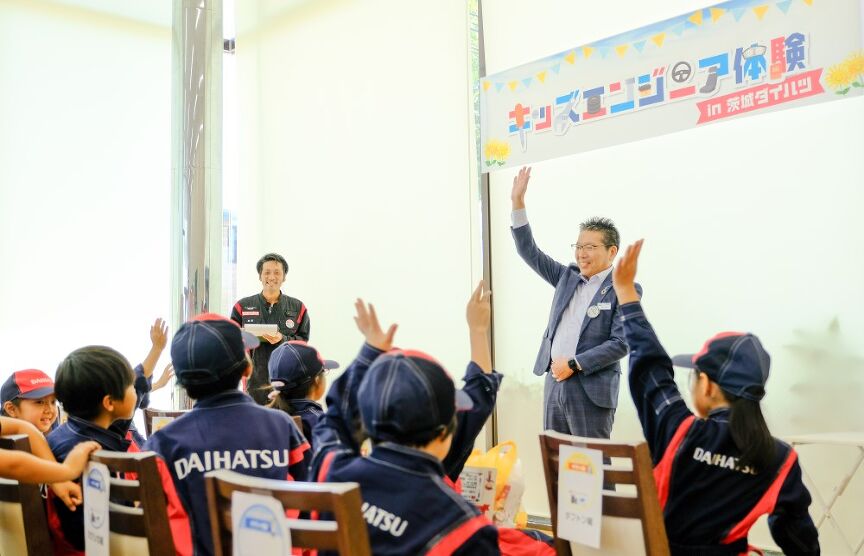 話は変わりますが、8月3日(土)に当社、石岡店に於いて第2回『キッズエンジニア体験 in 茨城ダイハツ』を開催いたしました。当日は、11名のちびっこエンジニアの参加を頂き、楽しいイベントを行うことが出来ましたので、当日の様子をご報告させて頂きます。