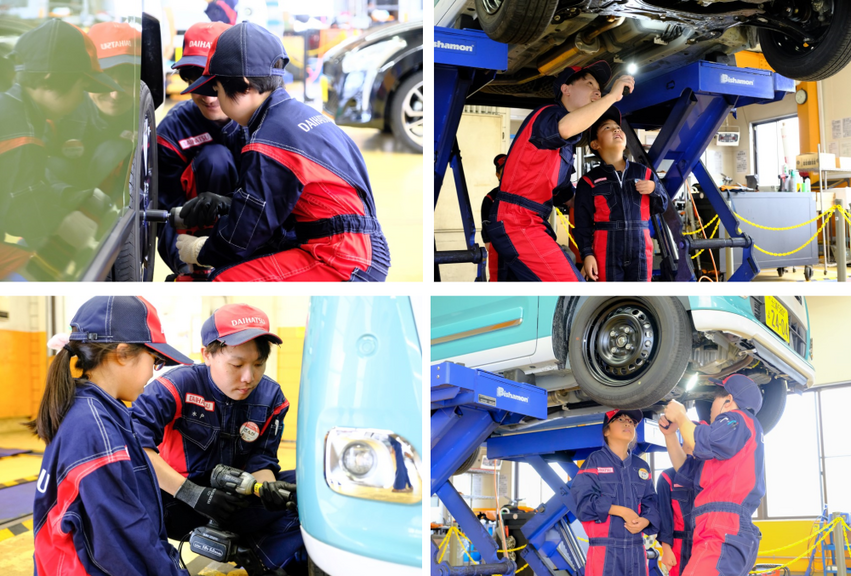 また工場の中ではオープンカーの「コペン」を用意しルーフ開閉体験や、「タフト」の実車によるタイヤ交換体験。