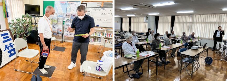 体力測定のコーナーでは理学療法士の先生にもおいで頂き、握力測定やゲーム形式の注意力測定を行い、ご自身の生活や運転で注意すべきことなどを熱心に指導いただきました。