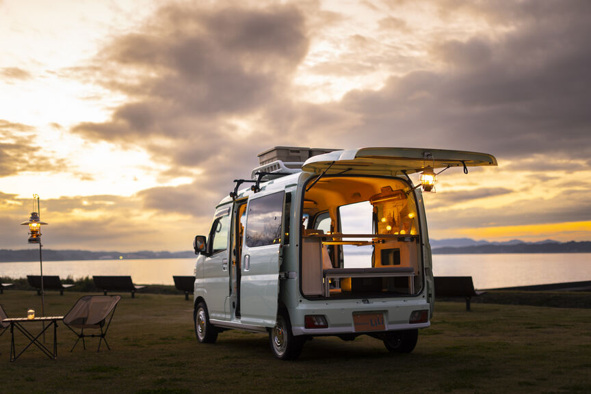 Rakuneru LiLi 軽キャンパー 軽キャンピングカー 車中泊 ダイハツ 新型車 ソロキャン 車旅 ハイゼット カーゴ アトレー キャンピングカー 車で寝れる
