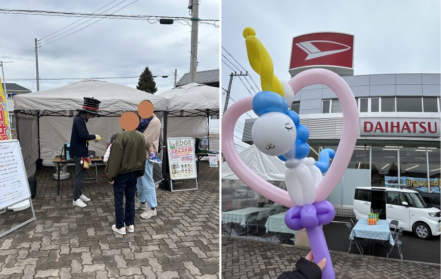 当日は来場記念品に石岡店同様に新鮮卵を用意、スタンプラリーやダイハツマルシェ(キッチンカー、バルーンアート、アイセラピー)を開催!